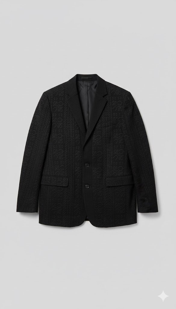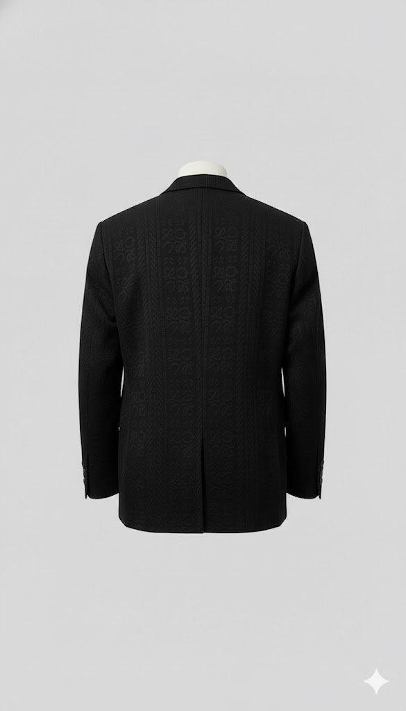 black single-breasted casual blazer with a textured pattern.