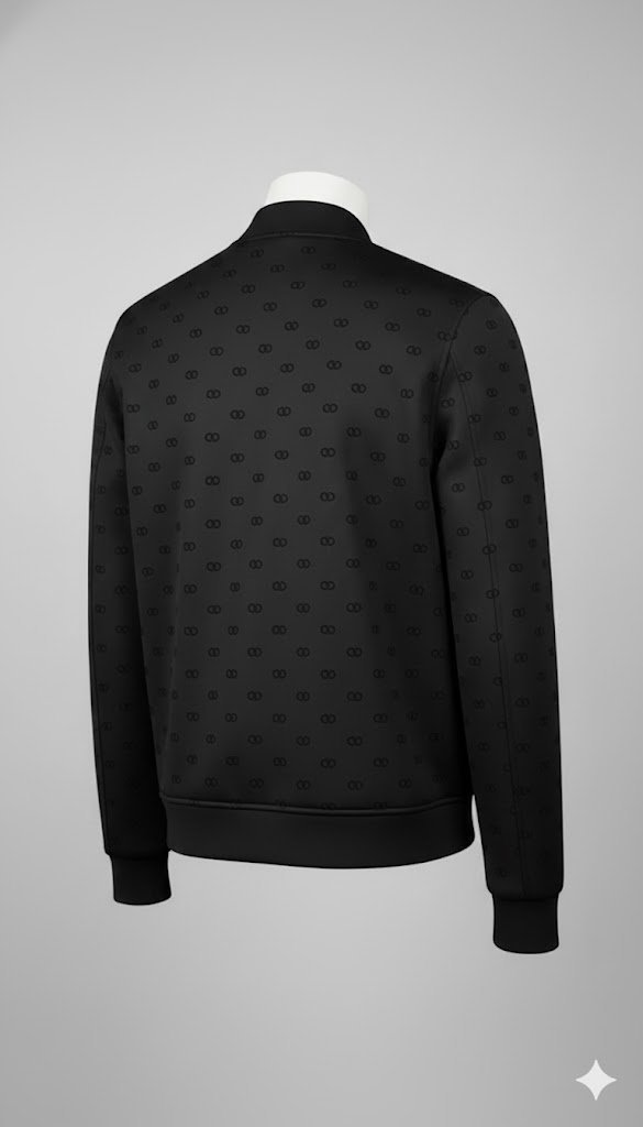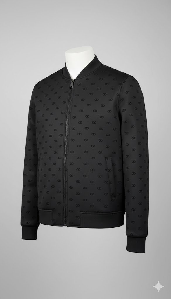 The Tonal Pattern: The “all-over” design is typically achieved through a jacquard weave, where the VLogo is integrated directly into the polyester or nylon fabric. Because it is tonal (black-on-black), the jacket remains sleek and understated from a distance while offering rich detail up close.