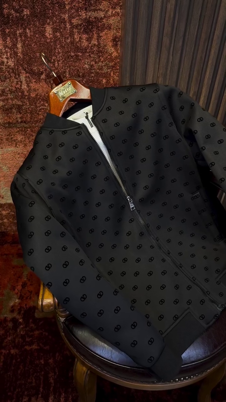 black Valentino Garavani bomber jacket with a tonal all-over pattern.