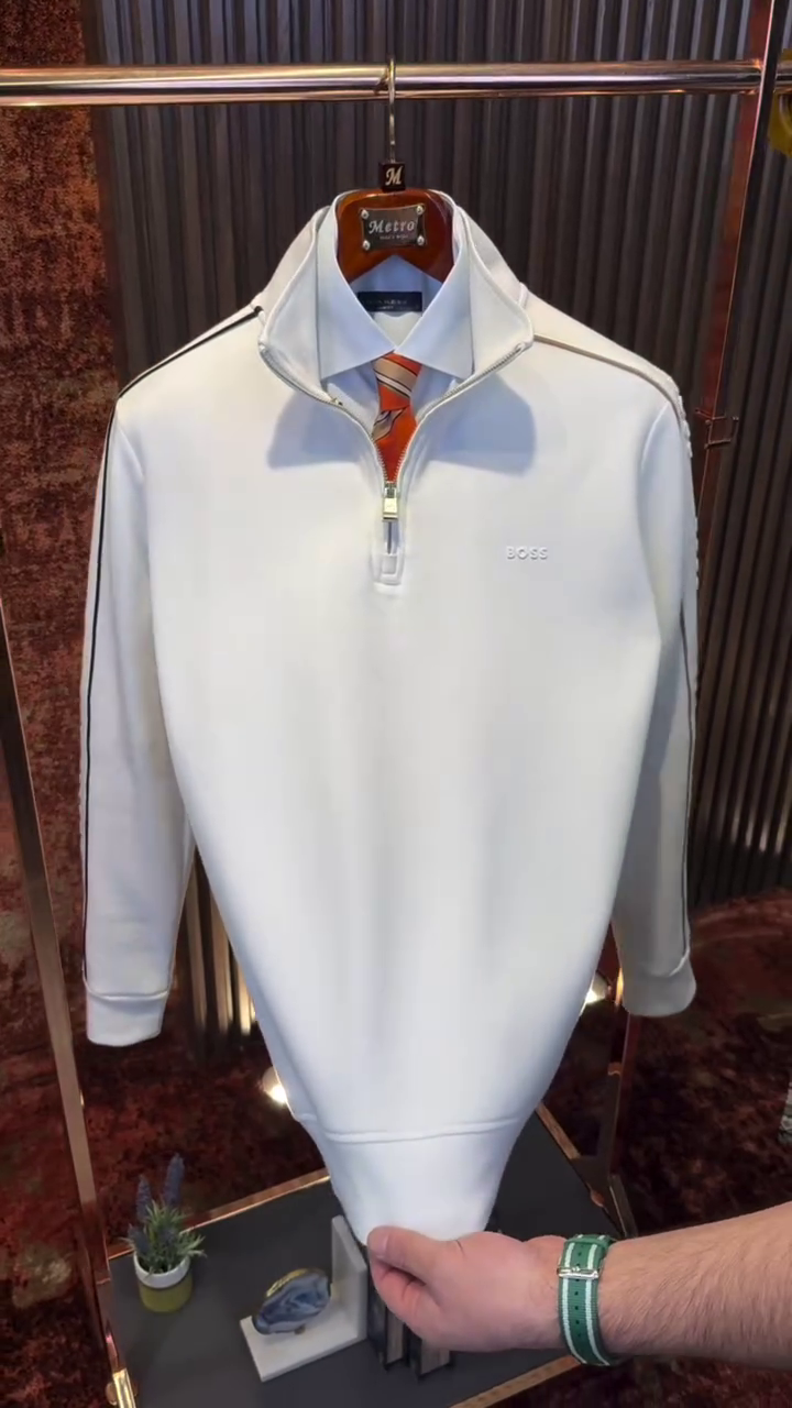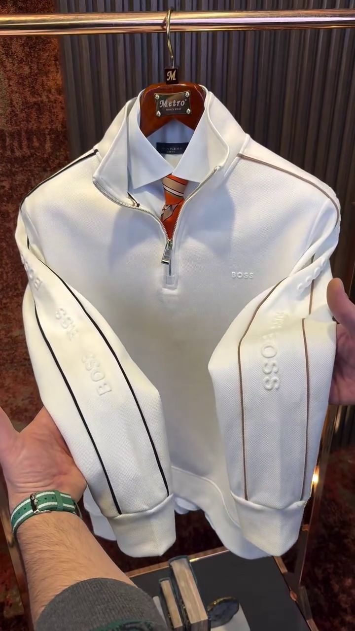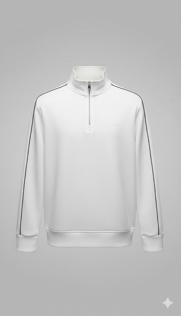 The Smart-Casual Pivot: Wear a subtly printed geometric sweatshirt over a collared white shirt, paired with slim-fit navy trousers and leather sneakers.